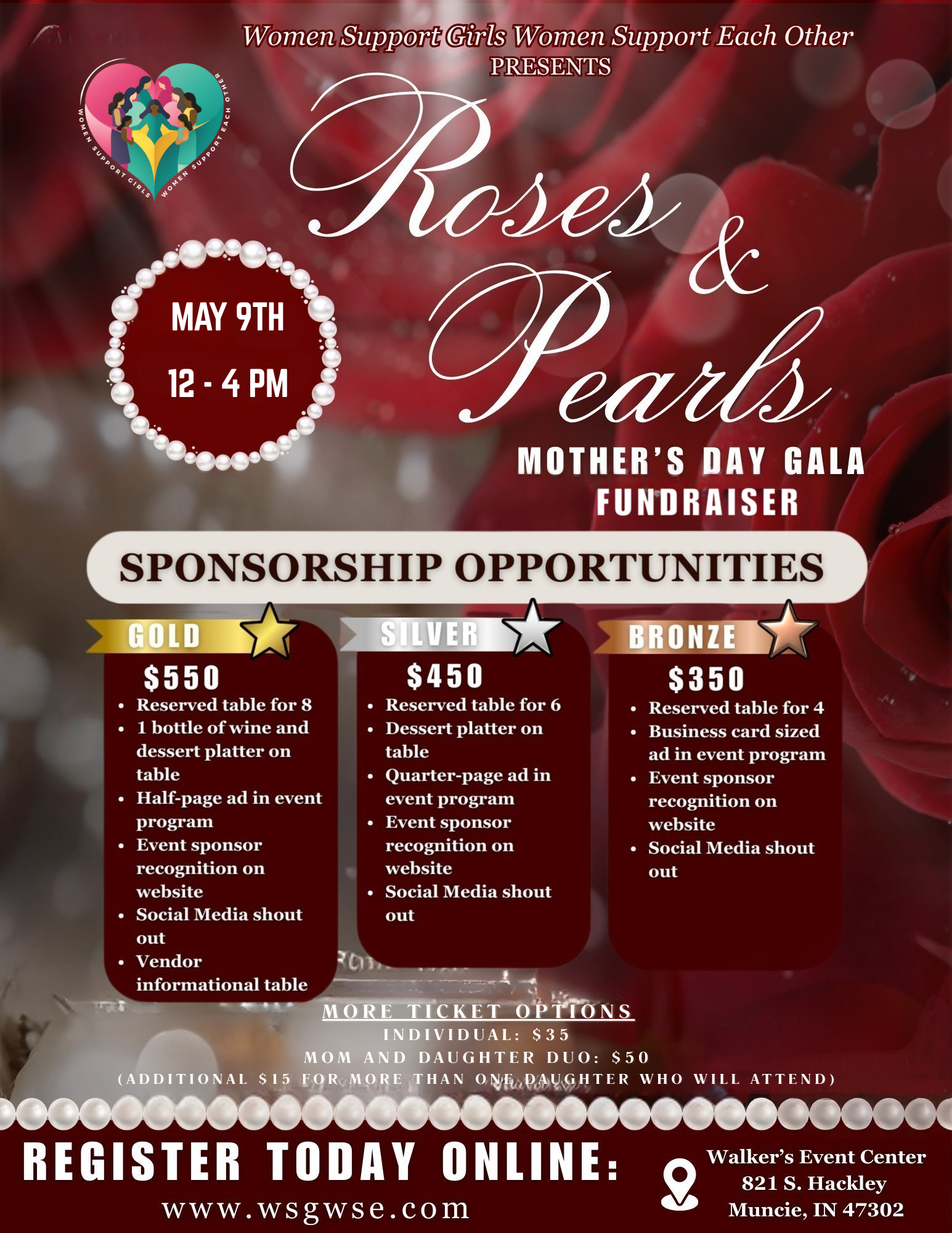 Welcome to the Roses and Pearls Mother’s Day Gala Fundraiser, an enchanting celebration hosted by Women Support Girls Women Support Each Other. Join us as we honor the incredible mothers from all walks of life—a tribute to their unwavering strength, love, and resilience. This formal event promises to be a heartfelt gathering filled with inspiration, connection, and empowerment.